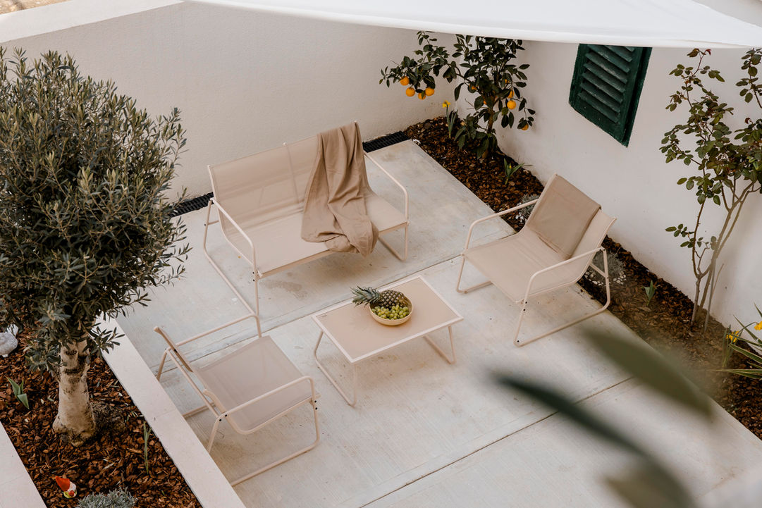 The terrace and courtyard offer views of the sea and nature.